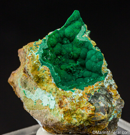 Rich coverage of deep green Cornubite lining a cavity in matrix. Small but high quality example of this rare species.