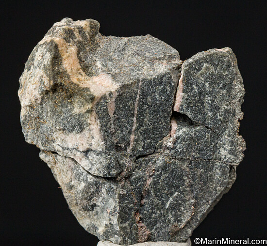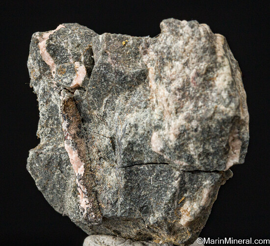 Veins of solid Silver running through a rock matrix with areas of light pink Calcite. I obtained this decades ago from a Canadian miner.