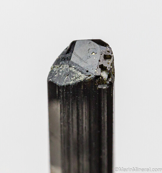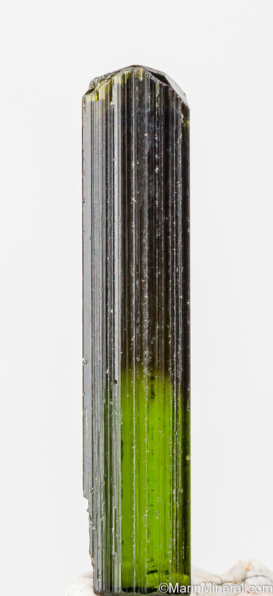Gem Tourmaline crystal recently mined in the Karoi district of Zimbabwe. Fully terminated, complete, and undamaged. It's transparent top to bottom with a good medium green color over half of the crystal with a darker green (though still transparent) termination. The termination is multi-faceted and complex.