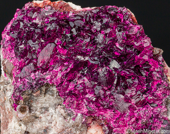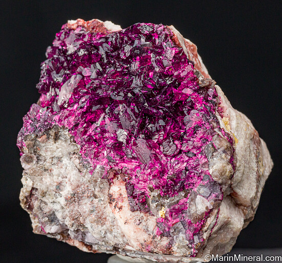 Beautiful and glassy large magenta Roselite crystals lining a shallow vug. Robust crystals to 8mm in size that are lustrous and transparent. The color and quality of this specimen will light up and energize any mineral display.