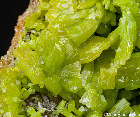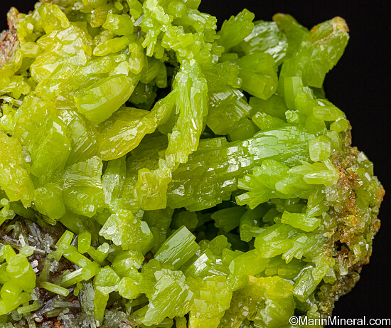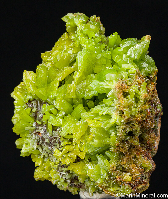 This specimen is loaded with bright, lime green crystals of Pyromorphite, with a central crystal group 3cm wide that spans the entire vug. Translucent green crystals with top color and in near pristine condition.