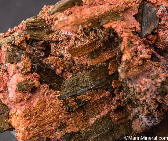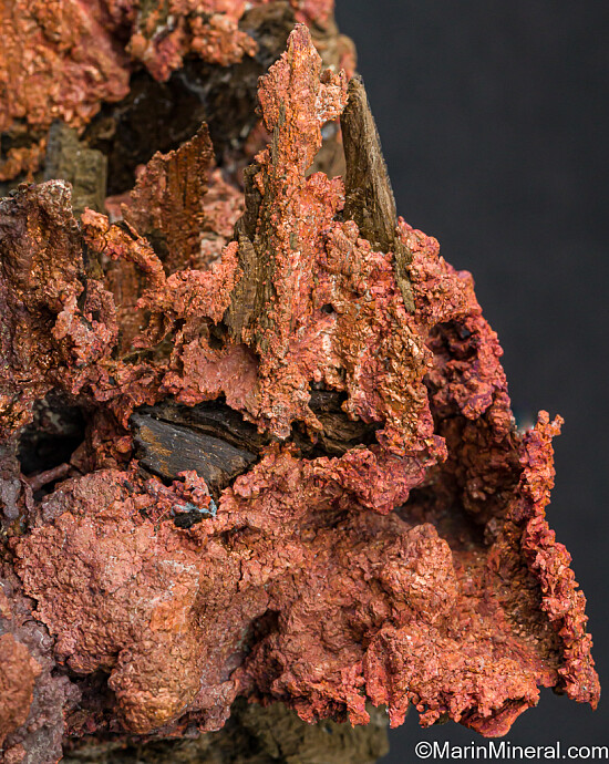Masses of solid Copper intergrown with mine timbers (wood). This is a post mining occurrence formed when Copper precipitated out of solution in an old underground portion of the mine. This specimen was found in 1997 when work in the ASARCO open pit intersected with old underground workings. Fascinating combination of miner and nature, an interesting conversation piece.