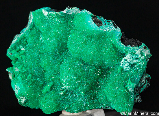 Colorful specimen of drusy Dioptase over translucent Chrysocolla atop a black matrix. Old Arizona classic that is now hard to come by. Pristine.
