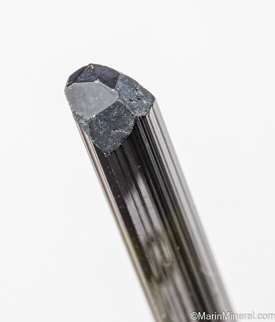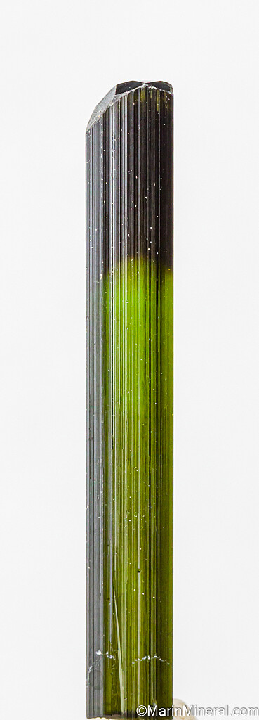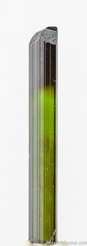 Gem Tourmaline crystal recently mined from the famous St. Anne's Mine in the Karoi district of Zimbabwe. Fully terminated, complete, and undamaged. It's transparent top to bottom with a good medium green color over most of the crystal with a darker green (though still transparent) termination. The termination is multi-faceted and complex. Excellent quality Tourmaline.