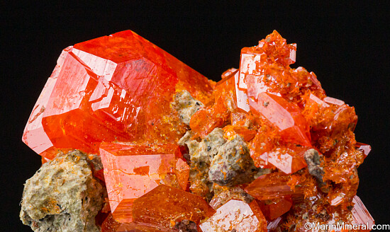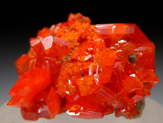 Cluster of Red Cloud Wulfenite with crystals to 1.7cm. The crystals are glassy with areas of transparency and the great color that made this mine famous.
