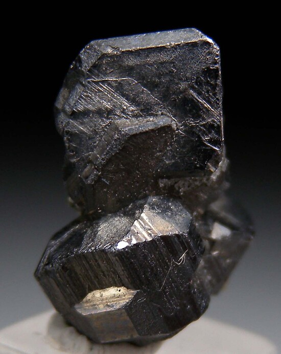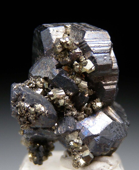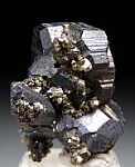 Exquisite cluster of silvery Stephanite crystals with attached Pyrite. There are 4 main crystals in the cluster, the largest 1cm on the diagonal. This is a floater group with no contacts, perfect and undamaged. A rare, superb Silver mineral, better than photos.