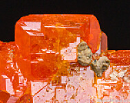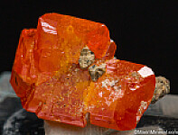 Cluster of Red Cloud Wulfenite with crystals to 1.3cm on matrix. The crystals are glassy and translucent, undamaged and have the great color that made this mine famous.