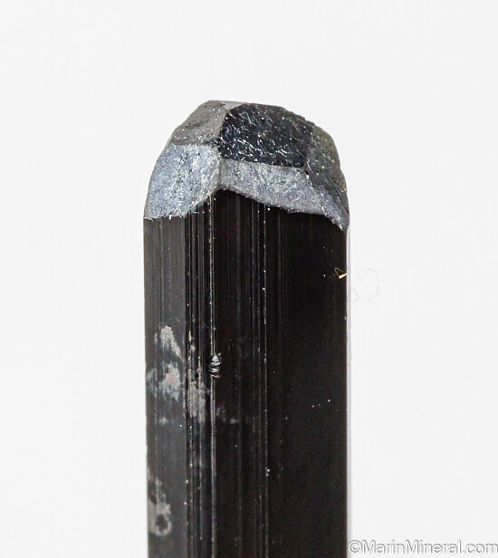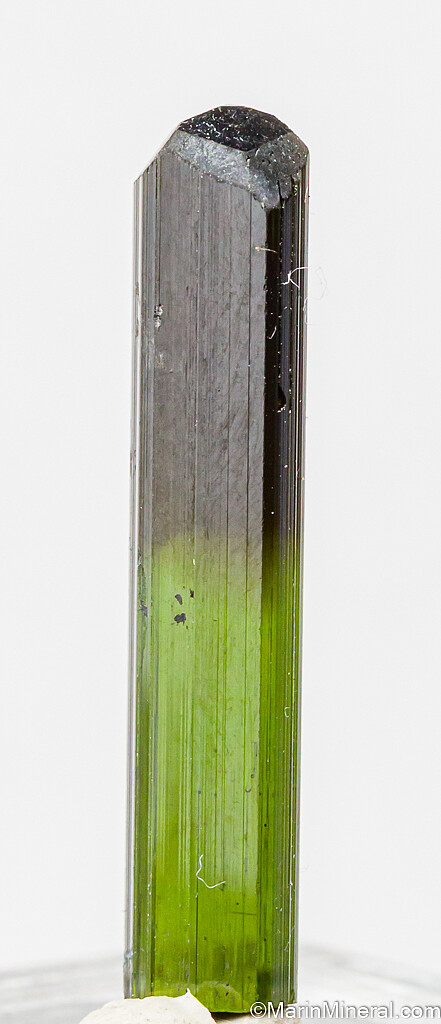 Gem Tourmaline crystal recently mined from the famous St. Anne's Mine in the Karoi district of Zimbabwe. Fully terminated, complete, and undamaged. It's transparent top to bottom with a good medium green color over most of the crystal with a darker green (though still transparent) termination. The termination is multi-faceted and complex. Excellent quality Tourmaline.