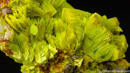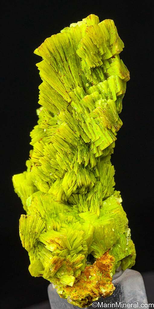 Outstanding cluster of neon-yellow/green Uranocircite crystals in a beautiful formation for display. Well crystallized all around, it's essentially all crystals with just a small amount of atttached white Feldspar and in pristine condition. This locality is considered to have produced the world's best Uranocircite, and this is as nice a specimen as I've ever seen.