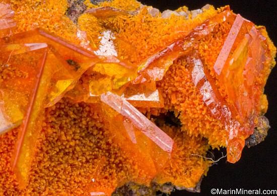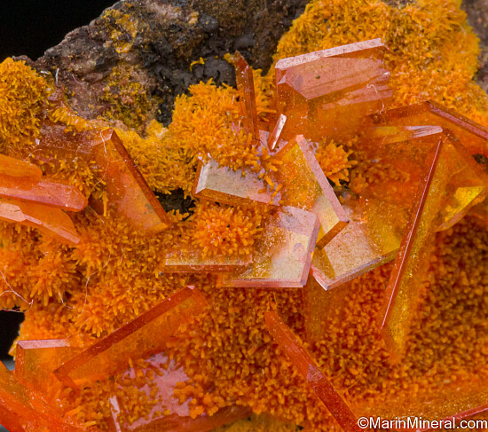Transparent orange 'window pane' crystals of Wulfenite with orange Mimetite on matrix. The Wulfenite crystals reach 6mm in size and are amazing works of nature. Valued at $150.
