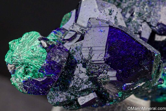 Fine quality Azurite crystals with Malachite. Crytallized all around and undamaged. Excellent quality, thick blocky crystals.