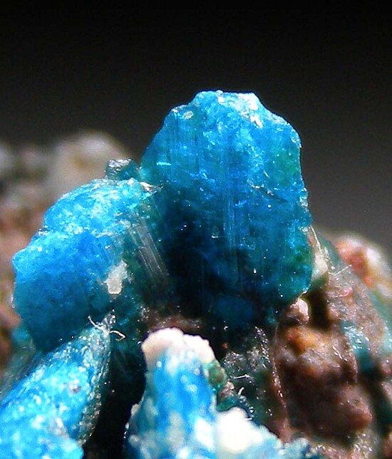 Vibrant, translucent blue Caledonite crystals to 9mm. Nothing but interlocking crystals, the specimen is solid Caledonite with minor amounts of attached matrix. A classic rarity from Tiger.