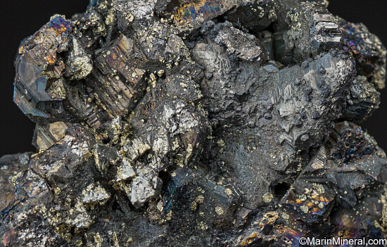 Fine cluster of intergrown Bournonite crystals sprinkled with tiny Pyrite crystals from recent finds in Bolivia. The Bournonite crystals reach 1.5cm in size and have classic 'cogwheel' form. Loads of great crystals an minimal chipping. Good from both sides. Valued at $200.