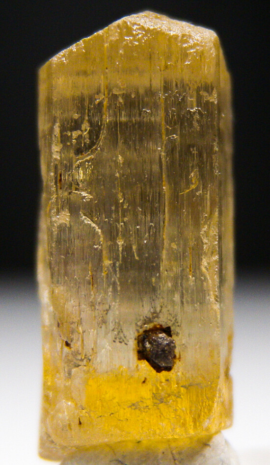 Complete, well terminated golden Scapolite crystal with good transparency. Tanzania has produced superb Scapolite crystals over recent years and this is a good representative specimen with good transparency. Valued at $100.