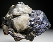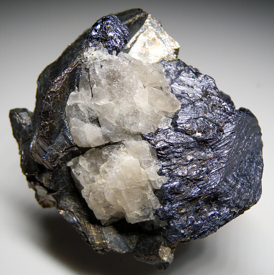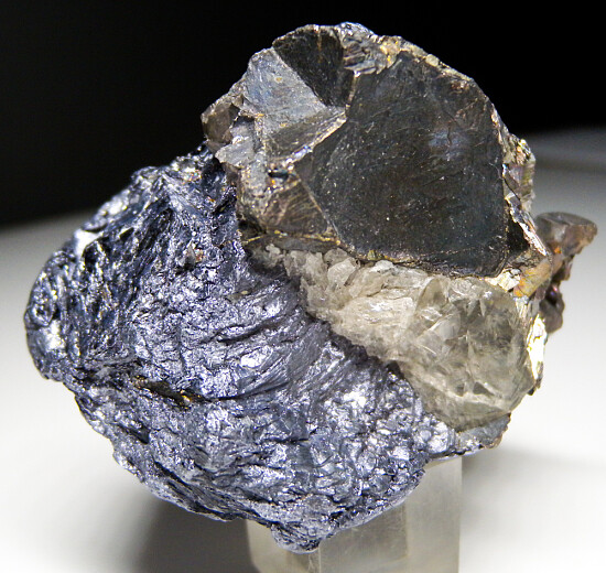 A 5.5cm crystalline Bismuth with silvery metallic Molybdenite and Quartz.