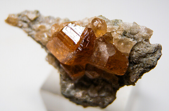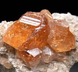 Transparent orange Grossular crystals on matrix from the now closed Jeffrey Mine. Crystals to 8mm.