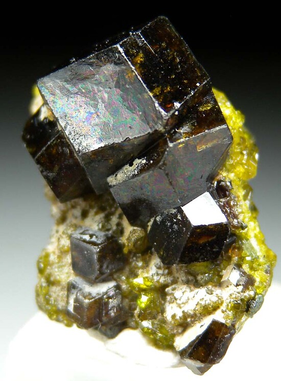 Fine quality old Andradite specimen with high quality undamaged crystals to 1cm on an Andradite matrix. excellent thumbnail out of an old collection.