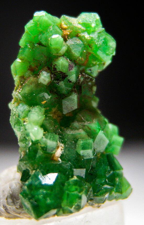 Cluster of green Grossular crystals var. Tsavorite from Tanzania. This is an old specimen out of a collection with no other locality given, but it's likely early Merelani material but I see no Graphite, it's nothing but Grossular crystals all around.