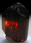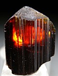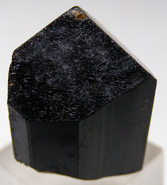 Deep rootbeer colored Dravite crystal with a sharp triangular termination. Facet grade gem quality for the entire crystal though with a few internal fracture zones/veils.