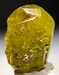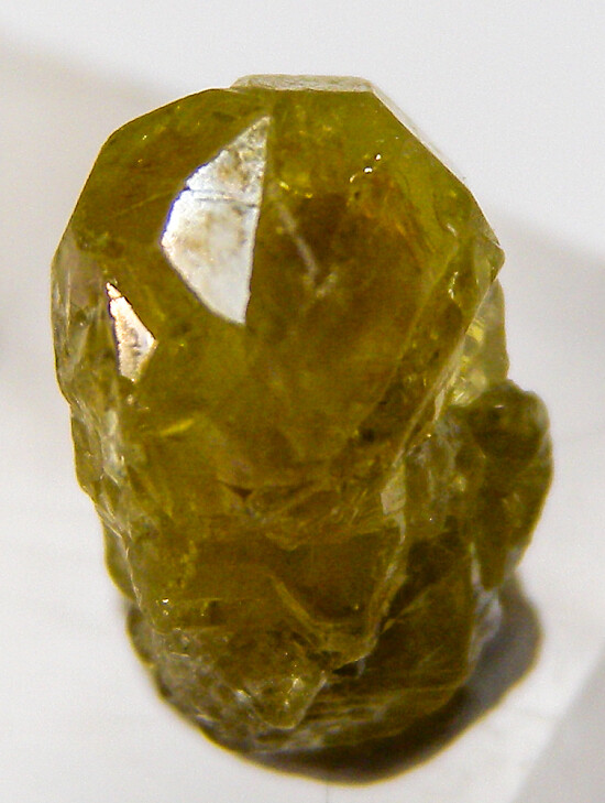 Golden Chrysoberyl from old finds in Brazil. Good twinning and crystal faces on one end.