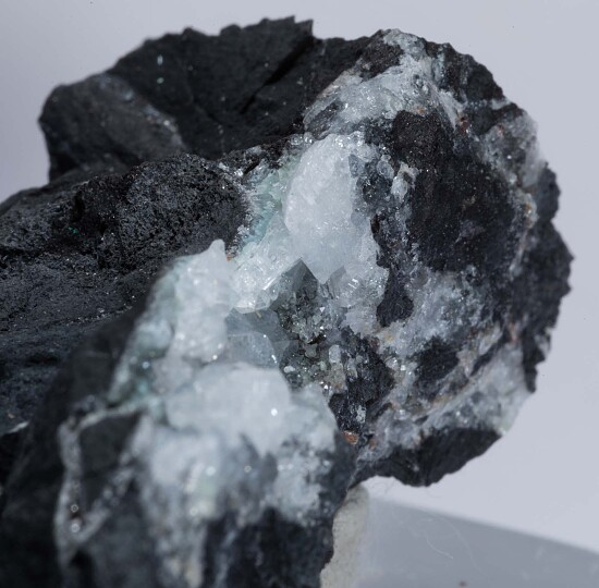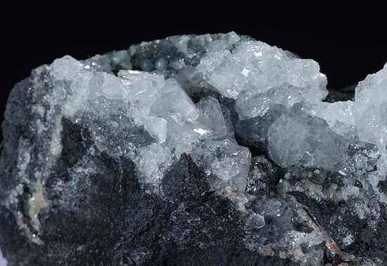 Shallow vug loaded with fine, glassy crystals of Fluellite. The crystals reach 3mm in size and are in excellent condition. Fluellite is a rare phosphate mineral and the world's best were found at this old Gold mine in Nevada.