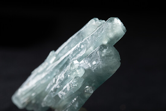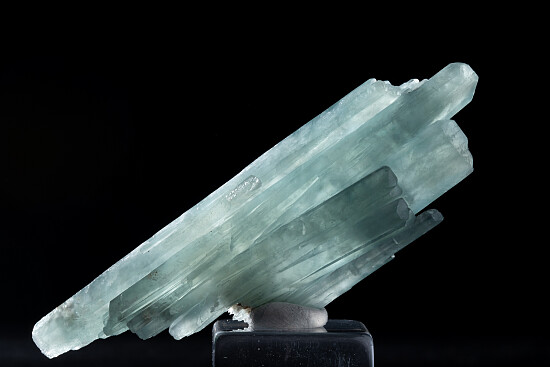 Doubly-terminated cluster of blue Barite crystals from the classic Stoneham locality. This is a beautiful example with good medium blue color and areas of transparency. Complete all around and undamaged, it's nearly a floater with just one tiny point of attachment at the bottom. Valued at $400.