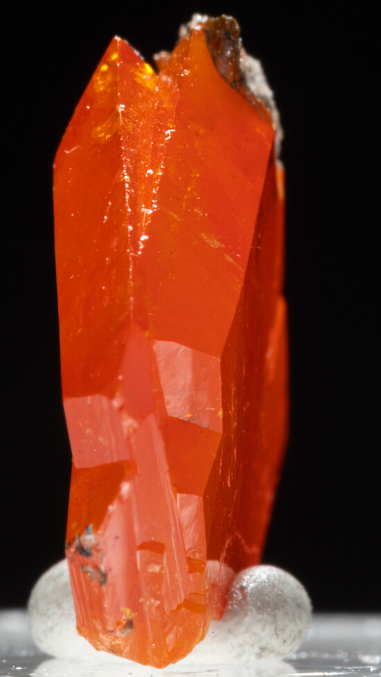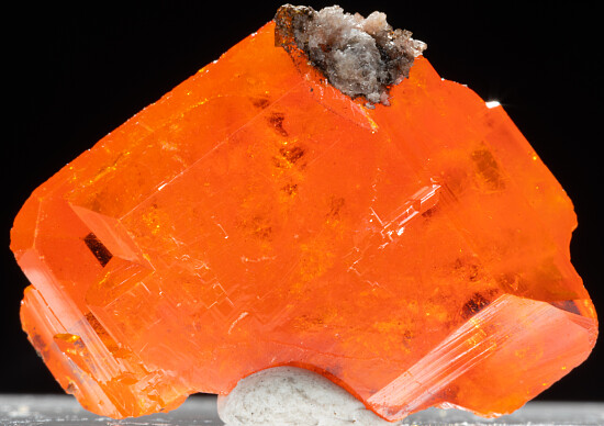 Bright orange/red crystal of Red Cloud Wulfenite. The crystal has glassy high luster and the great color that made this mine famous. There are transparent sections in the crystal. Undamaged.