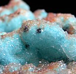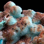 Rounded masses of Chrysocolla with dark Heterogenite all covered by drusy Quartz crystals. This locality is not a specific mine, rather a number of copper and cobalt deposits located over a distance of approximately 30 km between Tenke hill in the northwest and Fungurume hill in the southeast which have produced a number of fine mineral specimens in recent years.