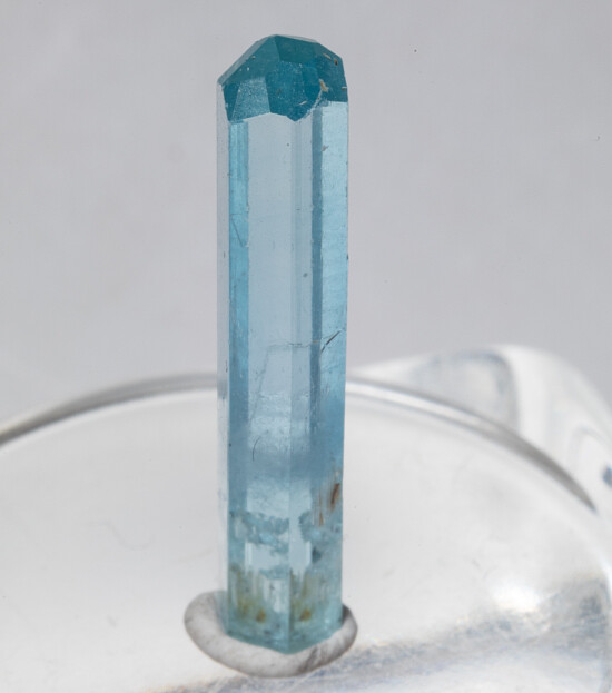 Single well terminated gem quality Aquamarine from Vietnam. Perfect and undamaged. The crystal is facet quality transparent for it's entire length and has the great blue color Vietnamese Aquas are known for.