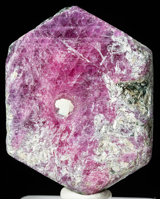 Hexagonal Ruby crystal from Morogoro, Tanzania. A flat, tabular crystal with large front and back faces and sharp, flat side faces. At 4cm it's good sized and also has great color.