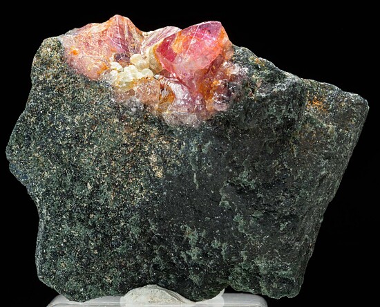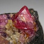 Pink Sapphire crystals on matrix from Winza. The best is a glassy 1cm crystal with raised surface trigons and areas of transparency.