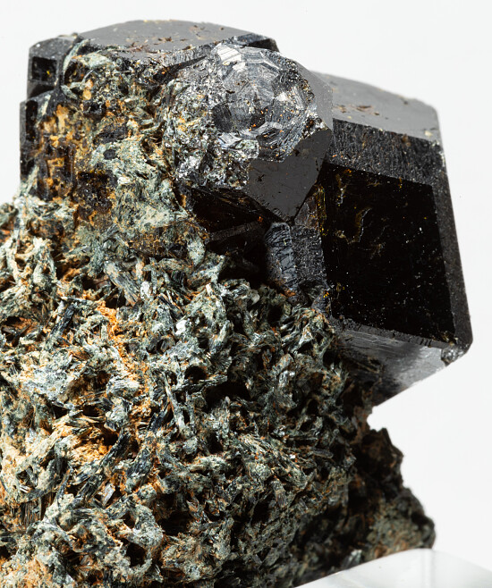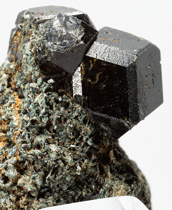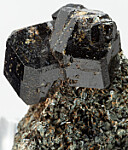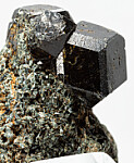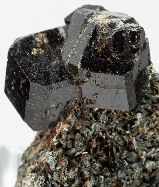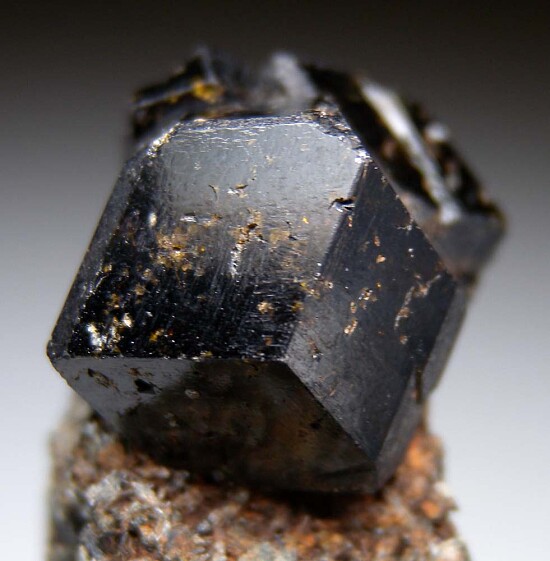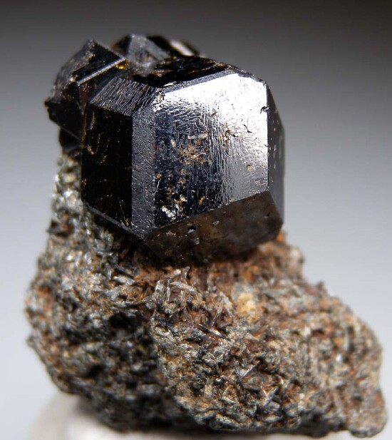 Cluster of well-formed black Andradite crystals on matrix. The crystals reach 1.8cm in diameter, have high luster, and display well.