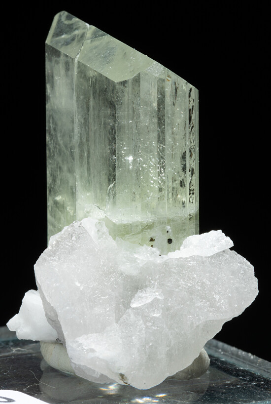 Sharp single yellow Kunzite crystal with attached Quartz and Albite. Gemmy and pristine, complete all around.