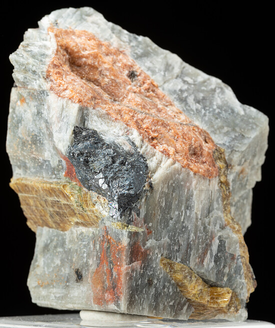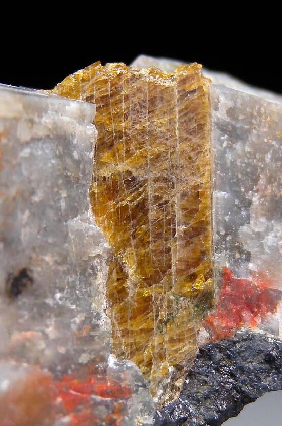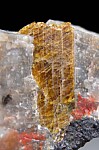 Yellow crystals of Wohlerite to 2cm embedded in pegmatite matrix. Wohlerite is a rare silicate mineral containing Nobium. The syenite pegmatites in this area of Norway is the Type locality for the species. Comes with a couple old labels.