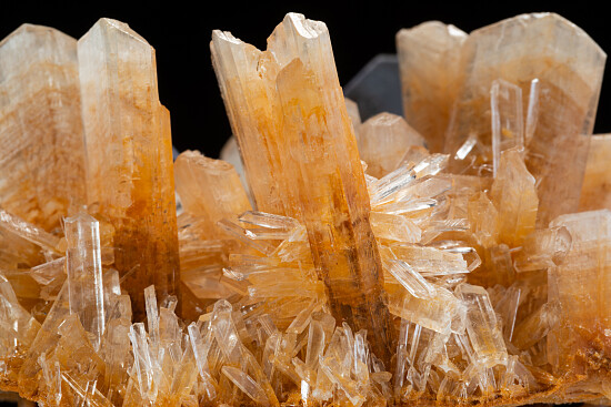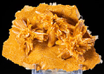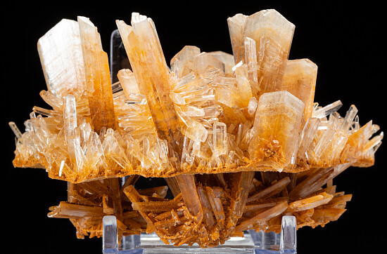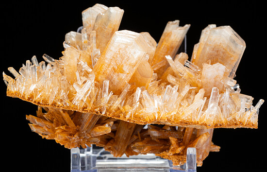 Orange Gypsum var. Selenite crystals from a well known Australian locality. Note the two layers of crystals. The locality where these are found is a small salt lake located in the Towan Plains Fauna Reserve. The two layers are caused by formation during changing water levels. A really pretty and unusual specimen.