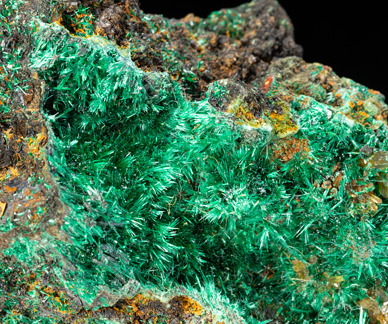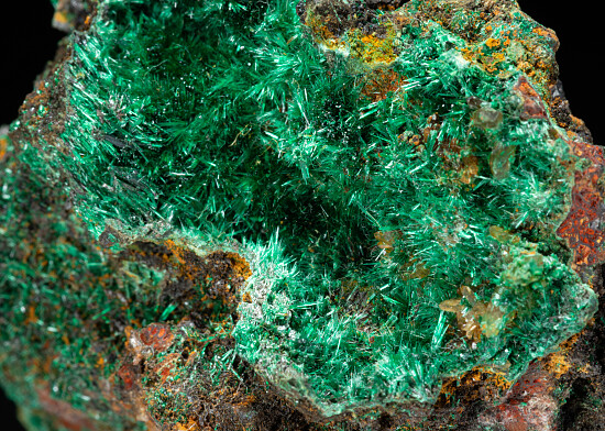 Vuggy matrix loaded with bright green Brochantite crystals.