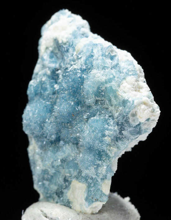 Small blue Benitoite crystals on Natrolite. This is an uncommon drusy style of Benitoite, a species more commonly found in isolated individual crystals. Neat addition to a Gem Mine suite.
