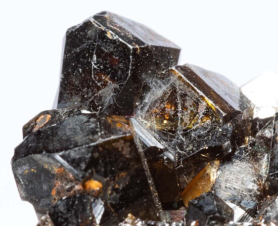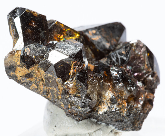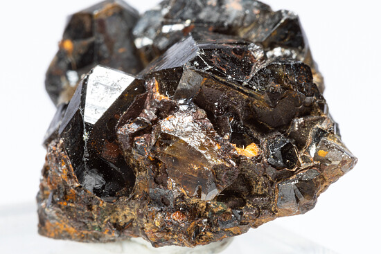 Sharp, gemmy Cassiterite crystals from the well known Viloco Mine in Bolivia. Cyclic-twin crystals to 1.1cm in size. Out of an old collection and comes with a Mineral Classics label.