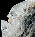 Glassy, transparent colorless Apophyllite crystals and pink Stilbite crystals on matrix. A beautiful undamaged piece that includes a double terminated Apophyllite 4cm wide. Recently released from a private collection and includes an old Spectrum Minerals label showing an old (decades?) price of $55.