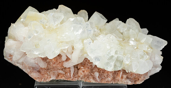 Mound-shaped specimen of white and yellow Apophyllite crystals covering an earlier generation of pink Stilbite crystals. A beautiful large display specimen loaded with great crystals. The Apophyllite crystals are varied in form and color, some with more pointed terminations and others with flatter, truncated terminations. Some have a yellow zone at the center. Overall a great example from the prolific basalts of India, recently released from a private collection.