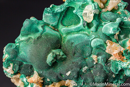 Solid botryoidal Malachite with attched reticulated crystals of Cerussite. Out of an old collection built in the 1970s-80s.