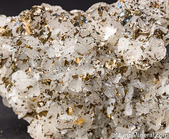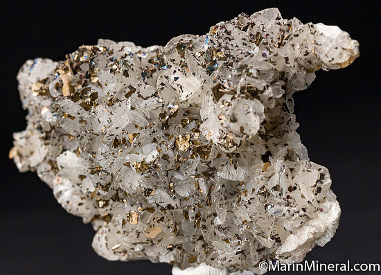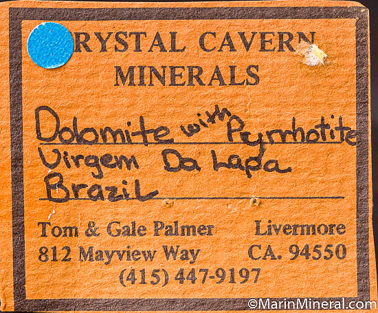 High quality Dolomite crystals sprinkled with numerous platy bronze metallic crystals of Pyrhottite and small translucent tan crystals of Siderite. Cubanite is also known from the locality and tiny Cubanite crystals are possibly present too. Out of an old collection built in the 1970s-80s.