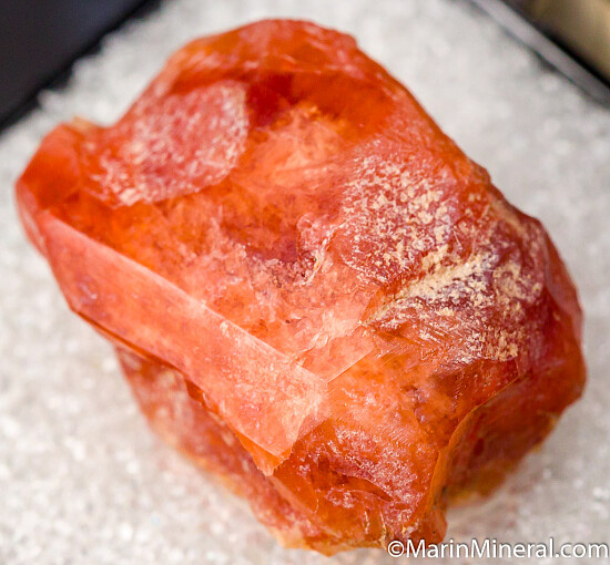 Single, slightly etched orange Spessartine crystal from the famous Little 3 Mine. Out of an old collection built in the 1970s-80s.
