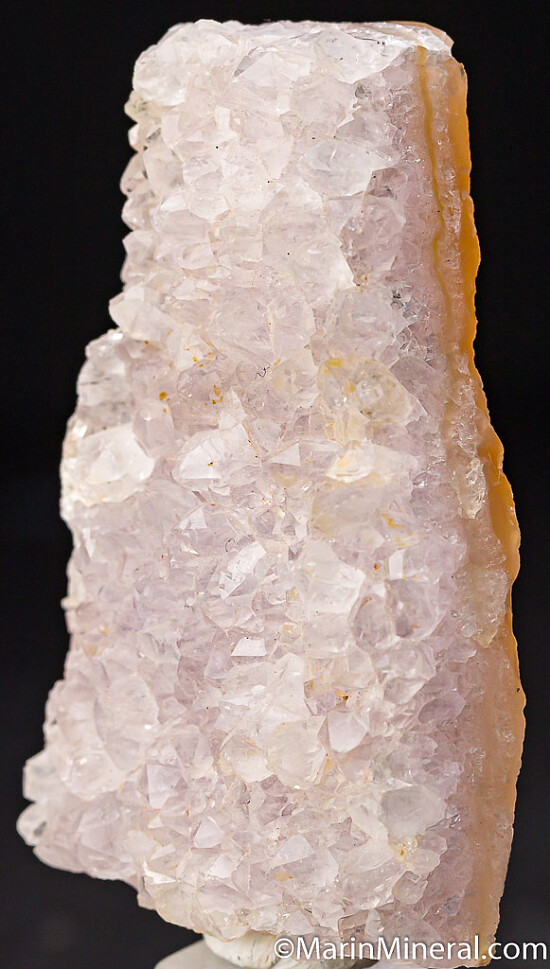 Druse of light purple Amethyst crystals over a layer of agate from obscure gold prospects in west Java. Neat locality piece for a Quartz collector. Out of an old collection built in the 1970s-80s. Old label shows an old price of $15, which is about $70 in todays dollars.