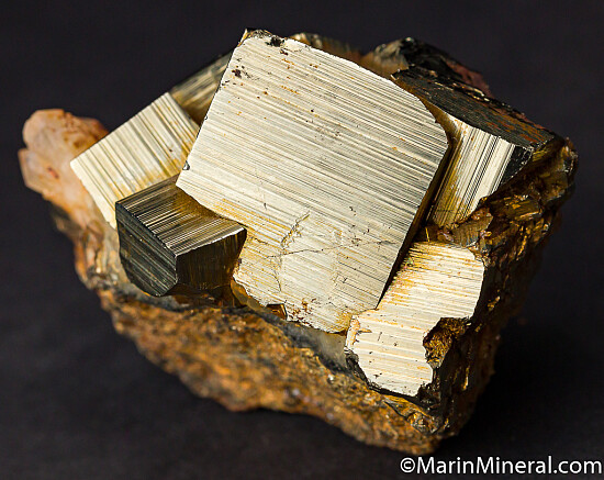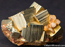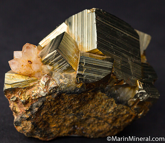 Large, striated Pyrite crystals to 3.5cm with Quartz crystals. From an old Pyrite collection built in the 1970s-80s.