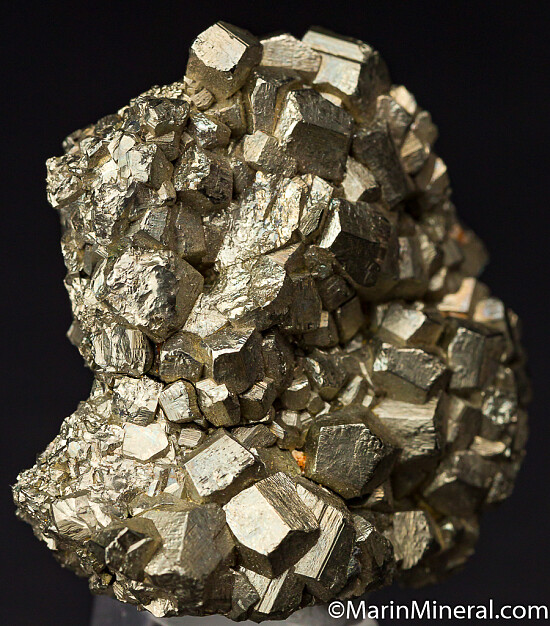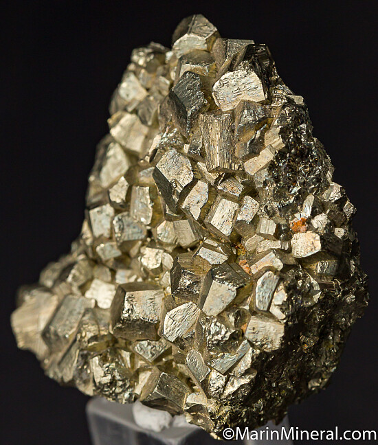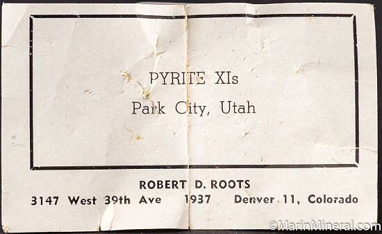 Specimen of solid Pyrite with the front surface covered by crystals. From an old Pyrite collection built in the 1970s-80s. Comes with an old Robert Roots label.