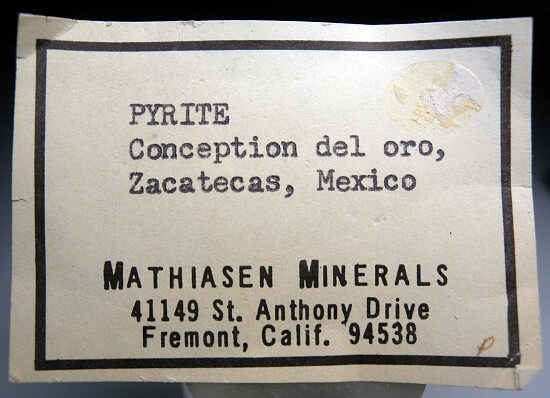 Large single cubic Pyrite crystal. Crystallized all around with large, smooth faces on all sides. From an old Pyrite collection built in the 1970s-80s.