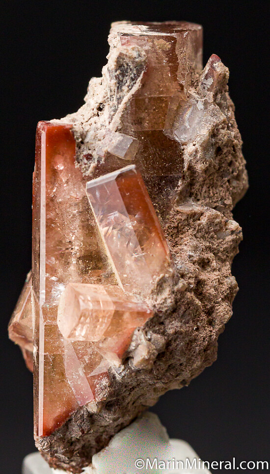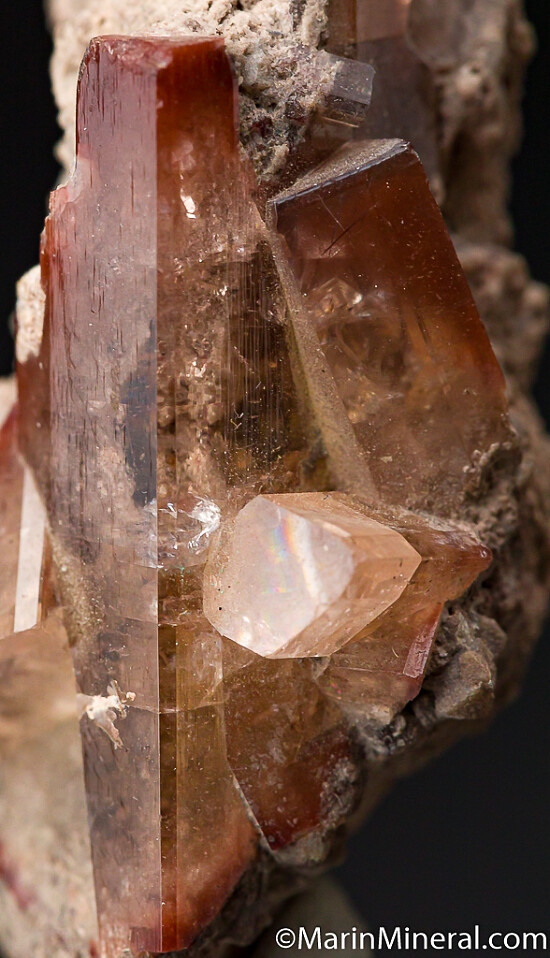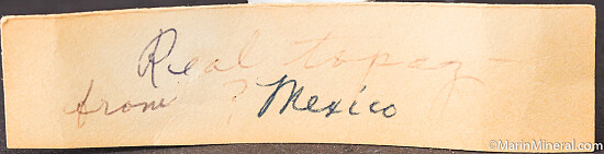 Cluster of transparent Topaz crystals with typical flat terminations, partially coated by Rhyolite. Out of an old collection built in the 1970s-80s.
