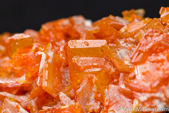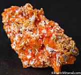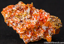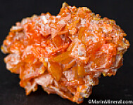 Matrixless cluster of orange Wulfenite and darker orange spherical Mimetite clusters. Solid crystals all around. Older piece.