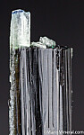Blue capped Dravite crystal from an unusual, one time find in 2017. There is slightly translucent to opaque dark base followed by a translucent to transparent white zone, then a deep blue cap. The termination (blue and white zones) is partially etched. Rare coloration for Dravite.